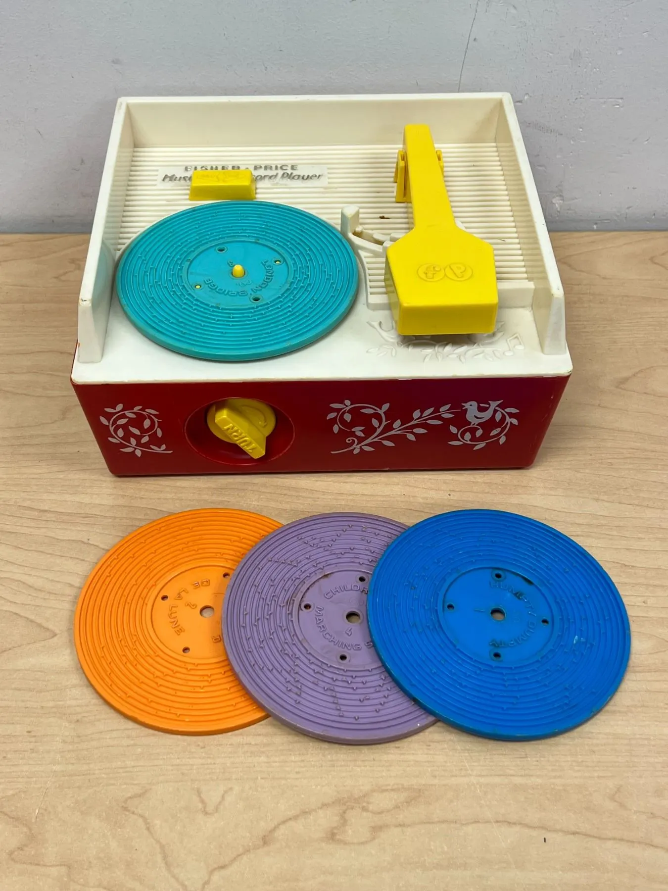 Fun fact, my first record player ever was actually a Fisher Price… It sounded about as good as you would expect, but I loved it. And if you look, it’s got a built-in 45 adaptor that just popped up when you pressed it.