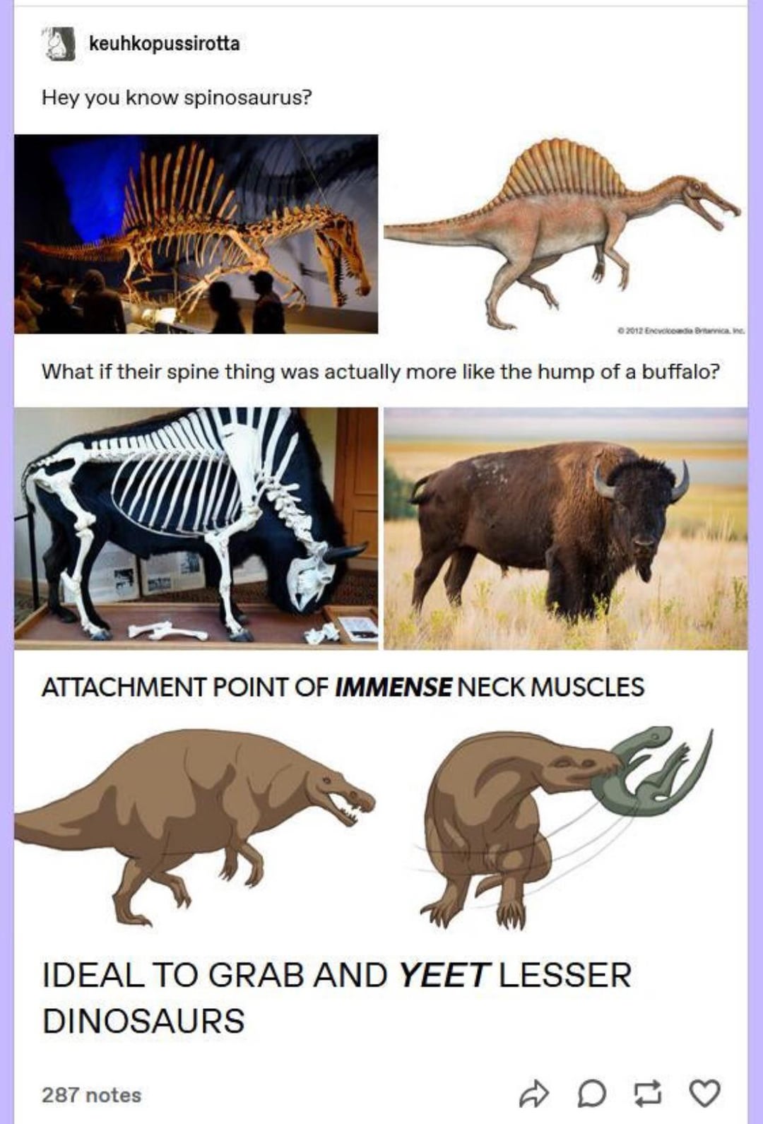 I’ll take a spino over a thylacoleo any day personally, at least a spino loses interest if you run away from the water… meanwhile those fuckin murder mittens have traumatized me lmao