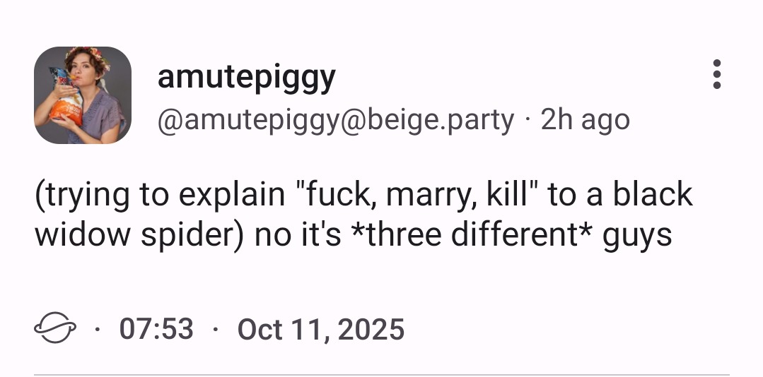 Well, black widow is a keeper. She keeps being a widow.