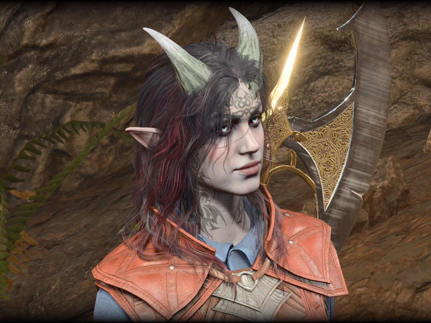 I made a Tiefling fighter I named Nyla (I named her after my Halo Spartan; it seems fitting, and I ran out of time to pick a Tiefling name). I usually just play myself, but with Jerry Attricks and now Nyla in Halo, I’ve kind of developed a soft spot for OCs. I was going to experiment with the body type more besides the default body type too, but I was already slowing down the party, and switching body types jacked up like all the customization I had already done, so I left her like that. Not that’s bad, I suppose. It does make it infinitely funnier when she absolutely decks people with her 17 Strength.
