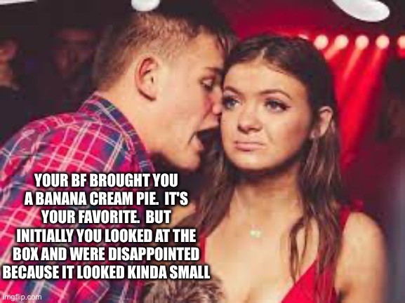Your BF brought you a Banana Cream Pie. It's your favorite. But initially you looked at the box and were disappointed because it looked kinda small