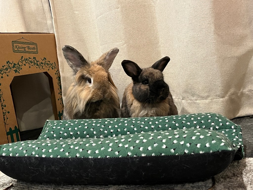 I don’t have a picture of them with the greens, but here are my two spoiled dorks.