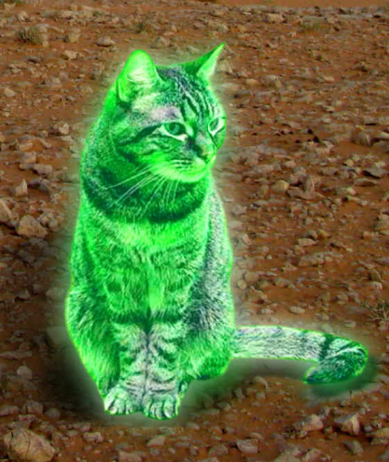 “Raycats”! There was an idea back when to genetically engineer cats by splicing fluorescent protein from jellyfish in’em, so that in the future people would know that there were dangerous radioactive waste around when the cats started glowing.
