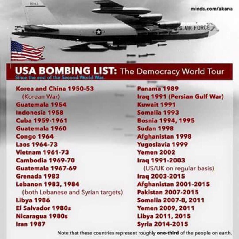 China hasn’t bombed nearly as many countries lol